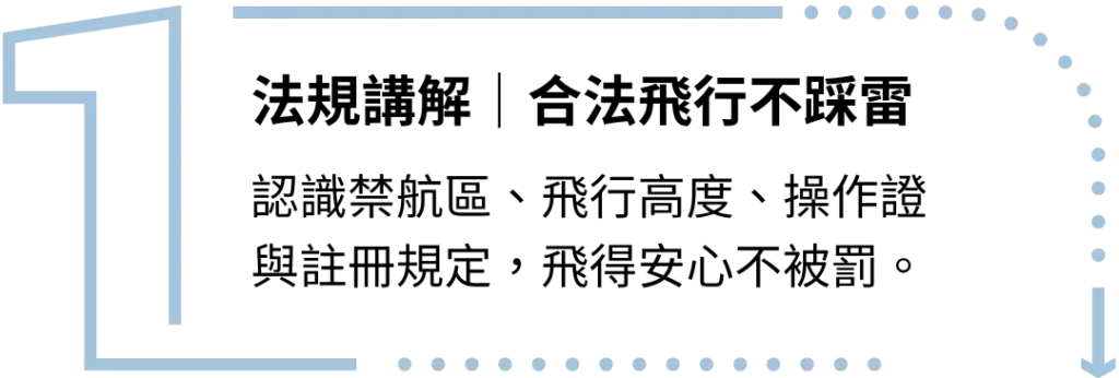 📚 覆訓制度:未來可免費回訓,僅需支付場地費,持續強化飛行與拍攝技巧。